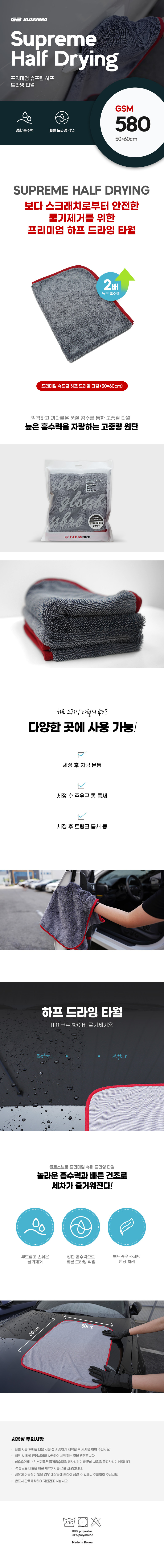 글로스브로 슈프림 드라잉타월 하프(50X60)